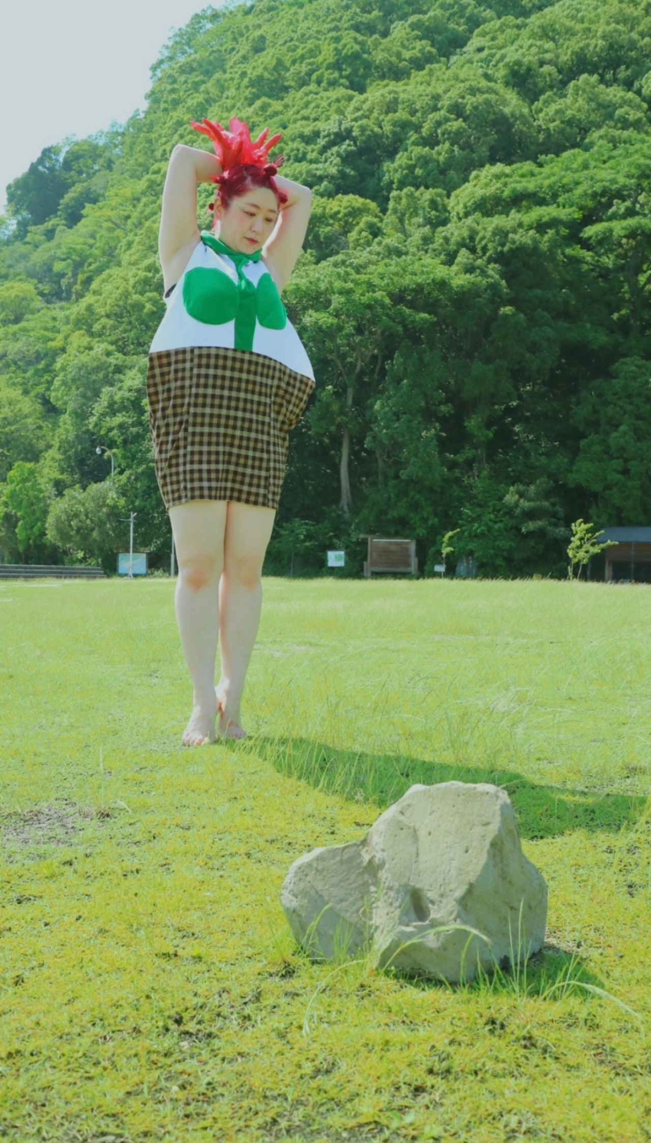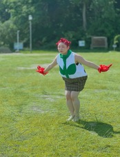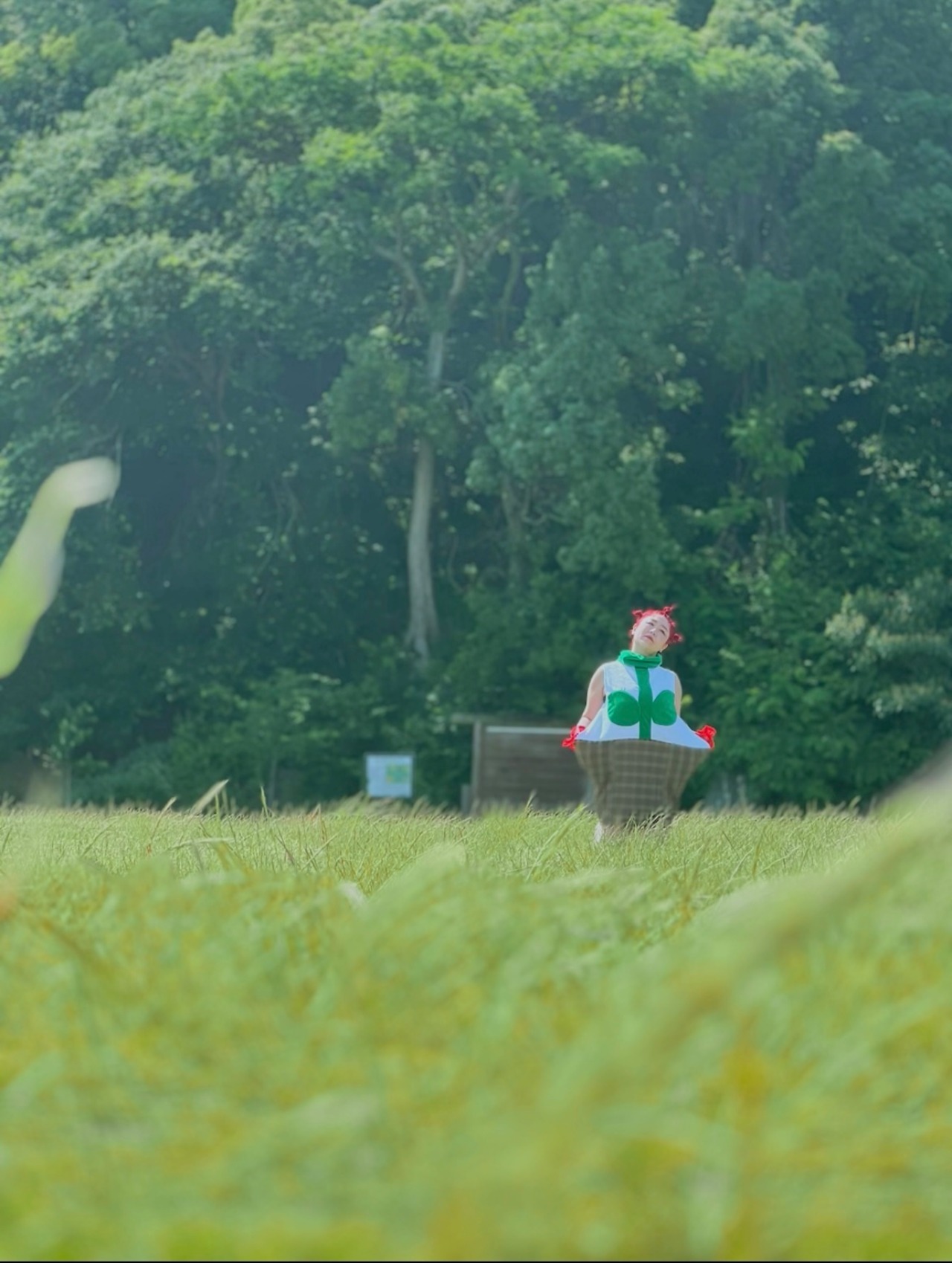 花服はワンピースなのですが、半分がハチ半分が茎と葉っぱそして、着るあなたの笑顔がお花の部分になります!